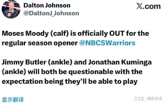 勇士揭幕战前遭打击,23岁后卫确定休息,两锋线大将也有伤