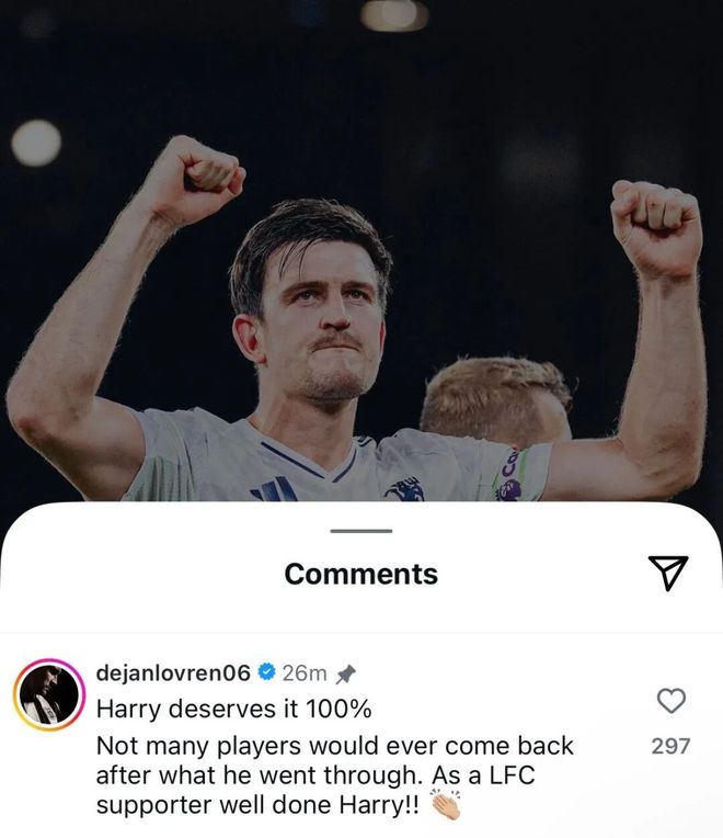 前利物浦后卫洛夫伦在罗马诺发布的关于马奎尔的帖子的评论区写道:哈里100%配得上。没有几个球员在经历了他所遭受的一切后还能卷土重来。作为利物浦球迷,也要为哈里鼓掌!